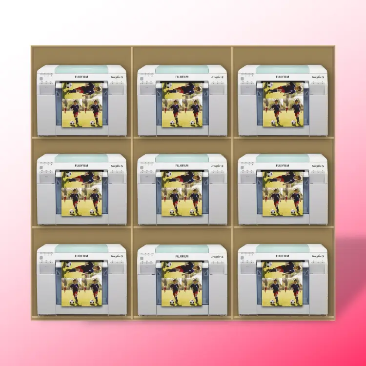 L'imprimante à jet d'encre Dry Lab Frontier-S DX100 de Fujifilm est une machine plus compacte et plus polyvalente. Ensemble, elles forment un micro-laboratoire évolutif contrôlé par BlueFX.